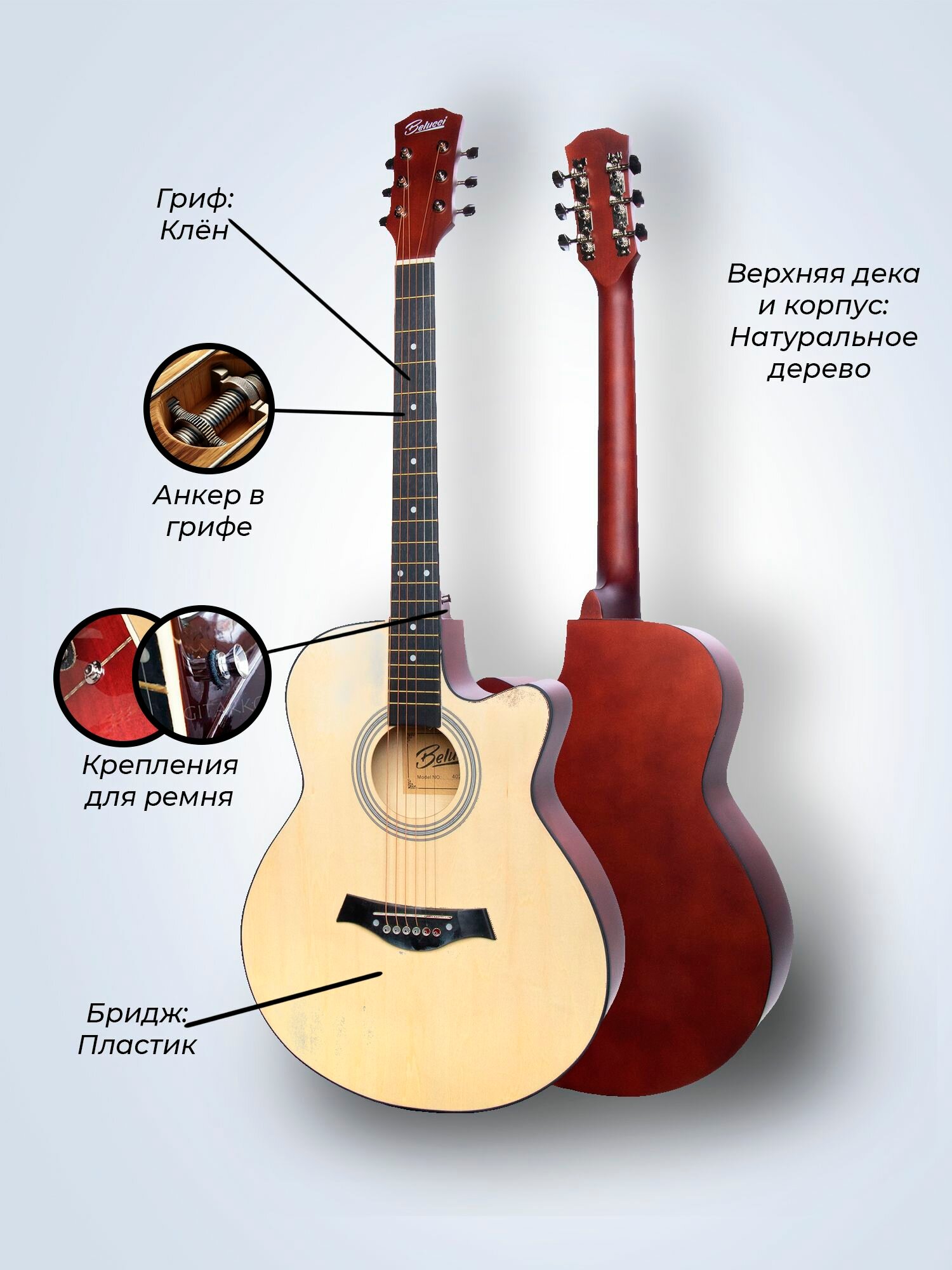 10 цен на Гитара акустическая 40" Натуральная (Инструмент начинающего музыканта, Elitaro E4020 N)