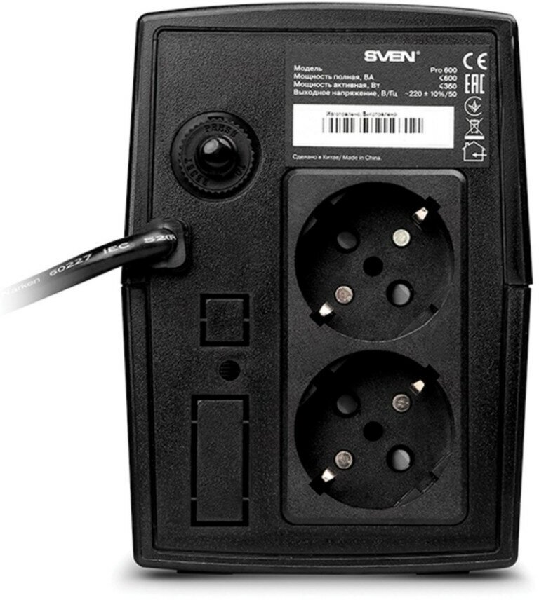 Источник бесперебойного питания SVEN Pro 600, 600VA (360W), 2 евророзетки, SV-013837 (354288) информация:
