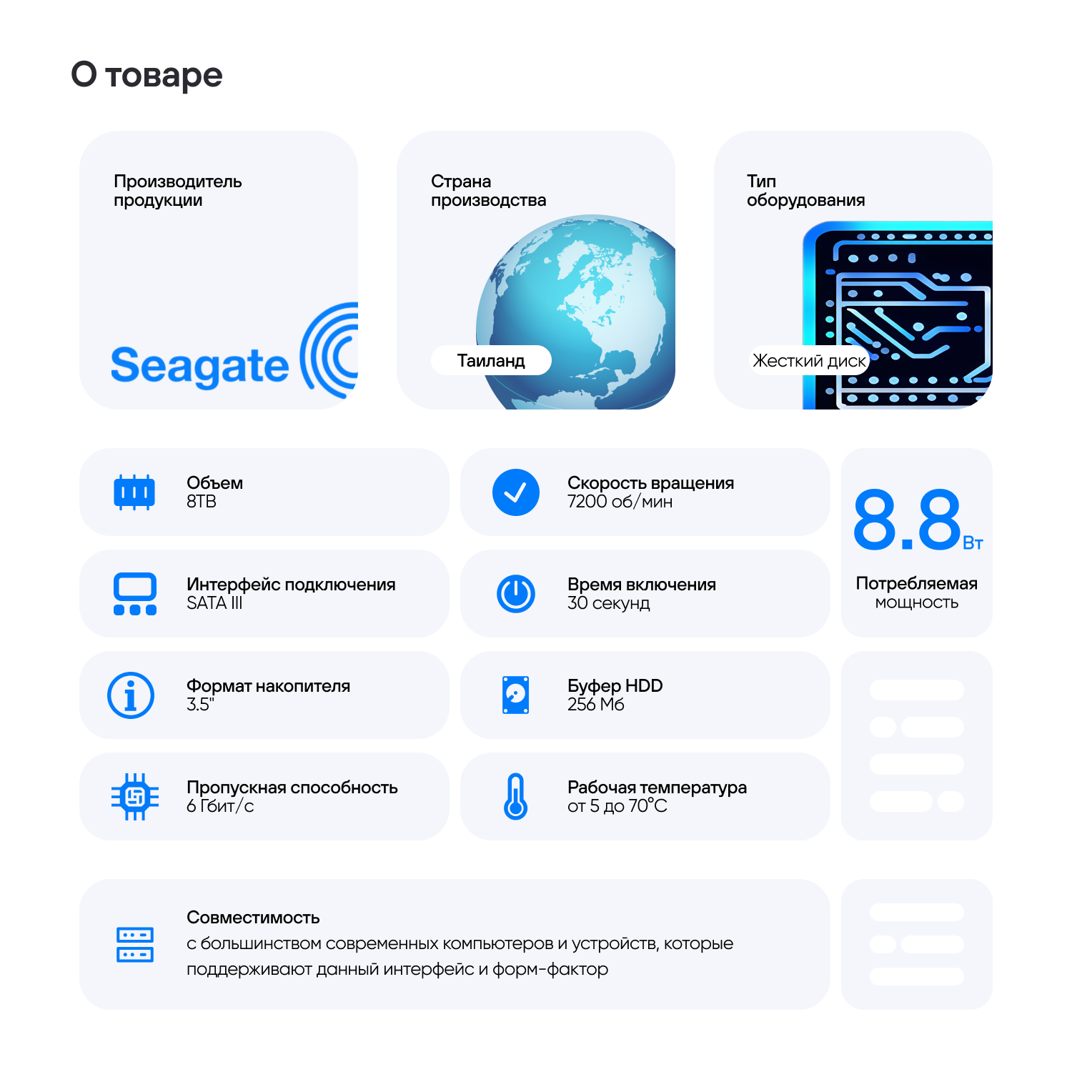 | Скорость вращения | 7200 об/мин rpm |