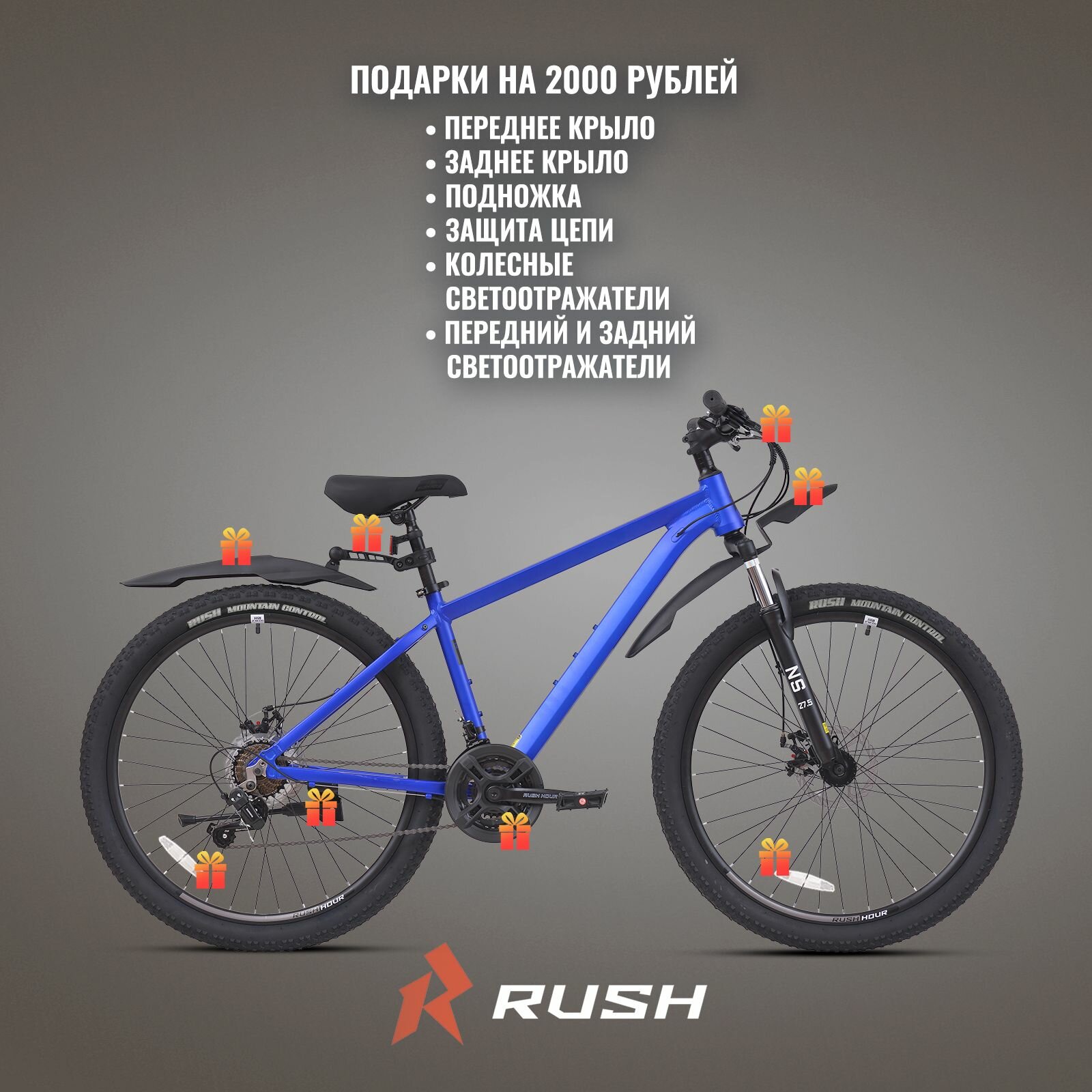 Отзывы на Велосипед алюминиевый взрослый горный 27,5" RUSH HOUR XS 725 21 скорость синий рама 18" рост 165-180 см. скоростной спортивный с амортизацией переключатель SHIMANO дисковые тормоза