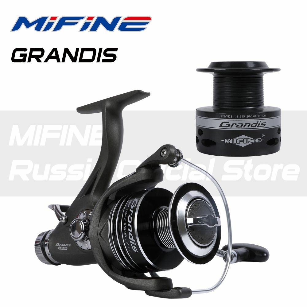 10 цен на Карповая катушка с двойным фрикционом MIFINE GRANDIS 5000B, 6+1 подшипник, с байтранером, метллическая шпуля/ручка