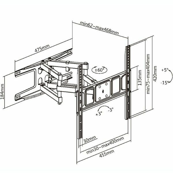 | Вылет от стены/потолка | 62-468 мм |