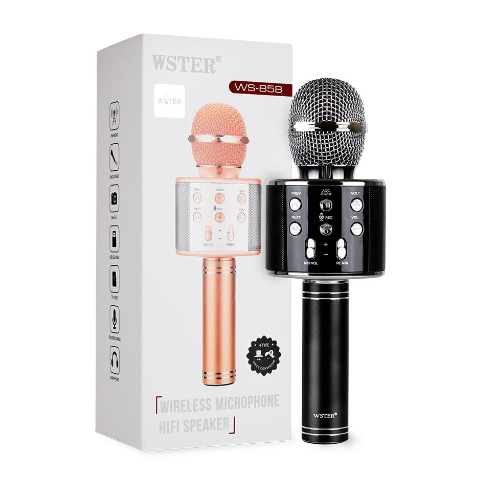 Отзывы на Оригинальный караоке-микрофон WSTER WS-858 с колонкой, Bluetooth, портативный, 5Вт, 1800mAh, чёрный