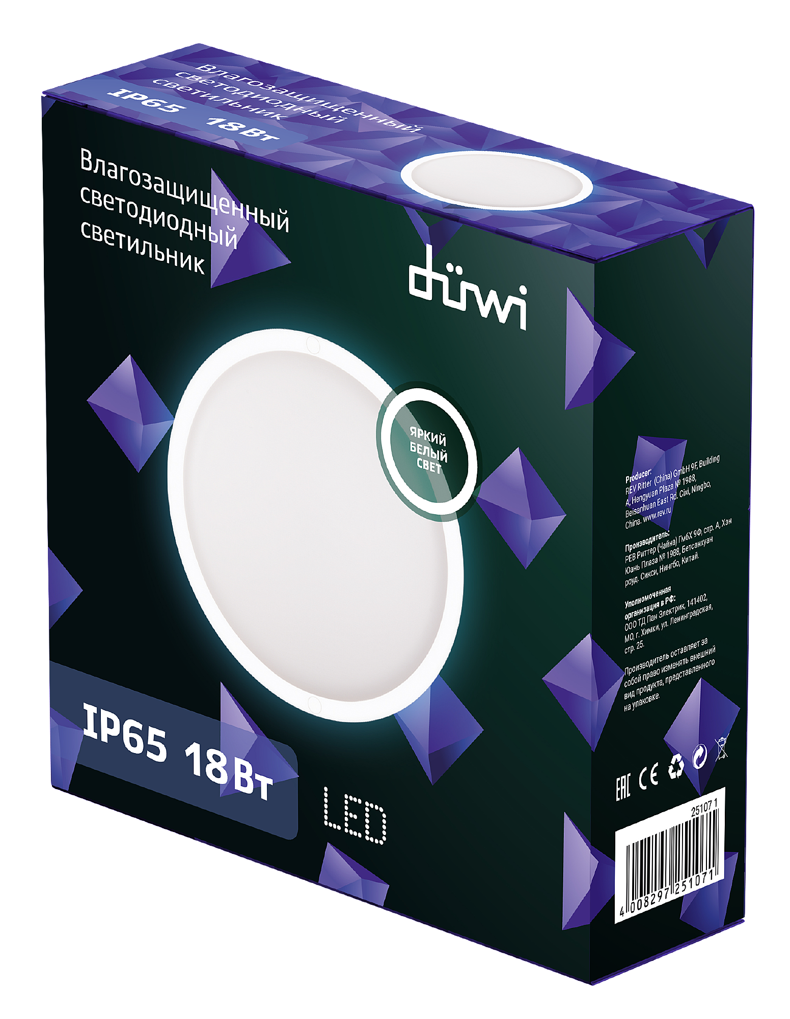 Светильник светодиодный Round IP65 круглый 18W 4000К влагозащита duwi 25107 1 информация: