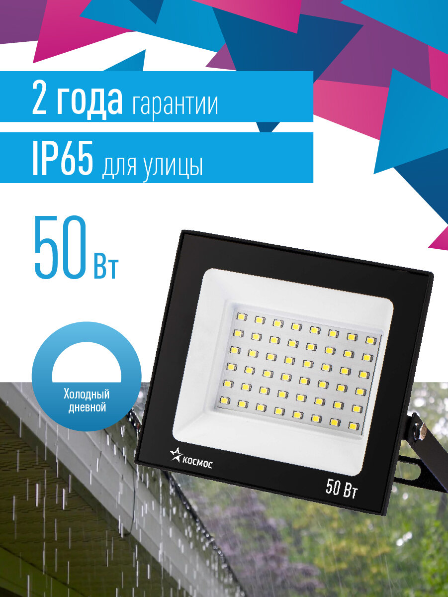 Прожектор уличный светодиодный Космос 50Вт, 4000 Лм, 6500К, IP65 информация: