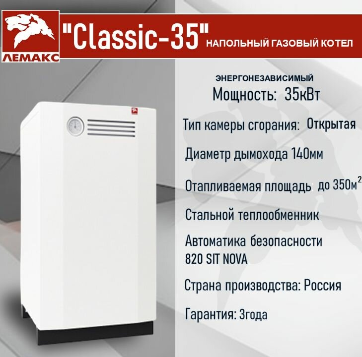 Котел газовый напольный Лемакс Classic - 30 кВт (энергонезависимый, одноконтурный)