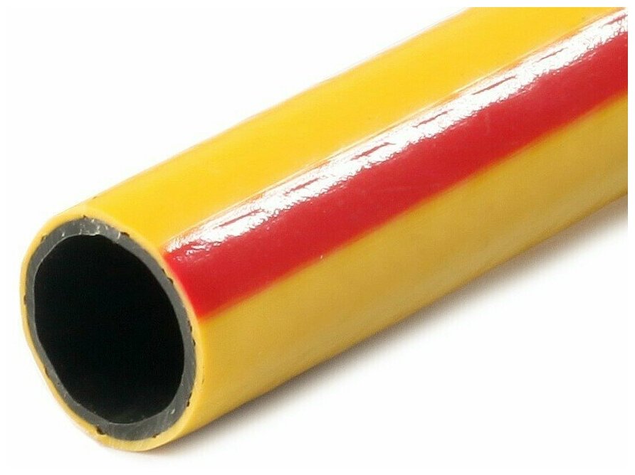 Шланг ПВХ 1/2" (12,5 мм) 25м. армир., 3-сл., толщ. 2мм, желт с красн. полосой Акварель ПолимерШланг (арт. 727121)