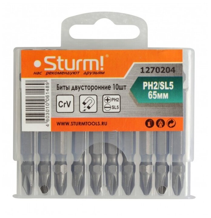 Биты двусторонние (10 шт; PH2/SL5; 65 мм) Sturm 1270204