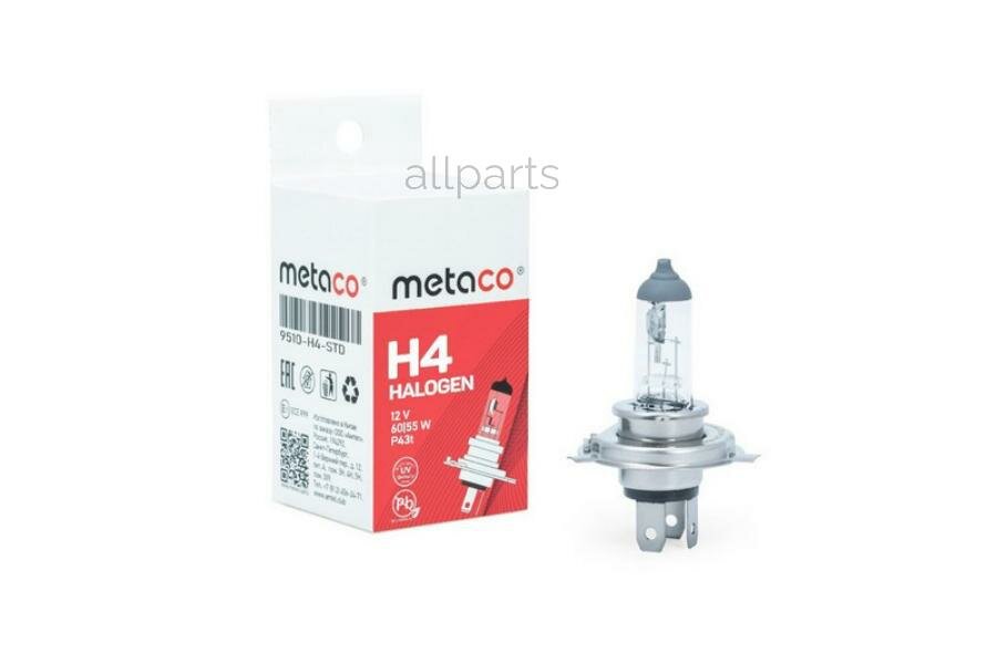 Лампа 12V H4 60/55W P43t Metaco 1 Шт. Картон 9510-H4-Std METACO арт. 9510-H4-STD