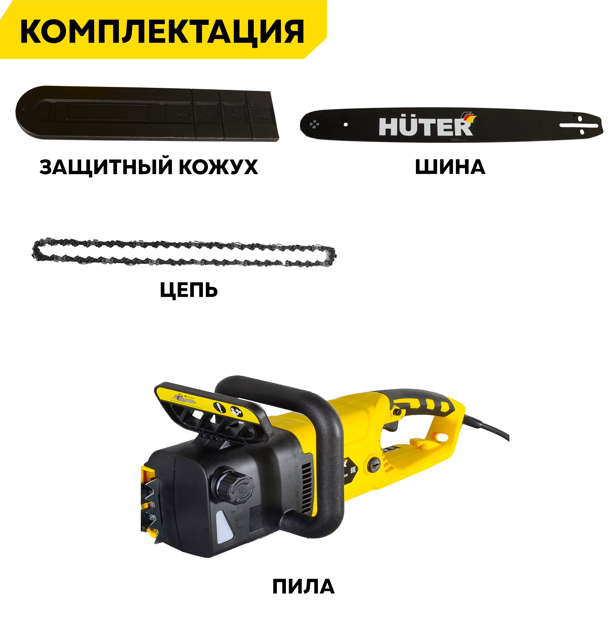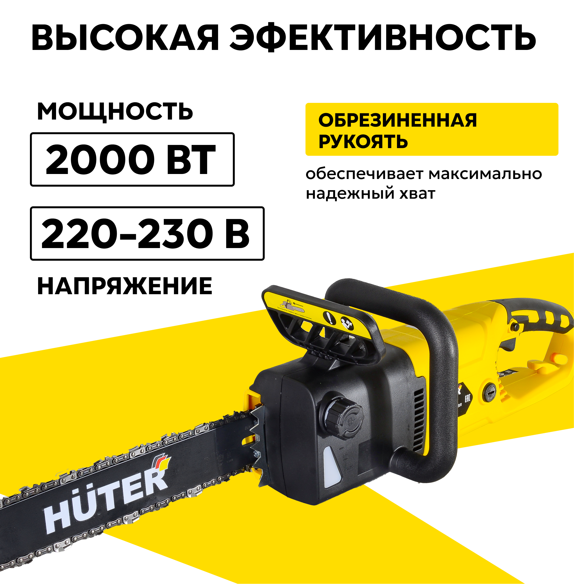 10 цен на Электропила Huter ELS-2,7, 2000 Вт, скорость пиления 13,6 м/с, шина - 40 см, автоматическая смазка