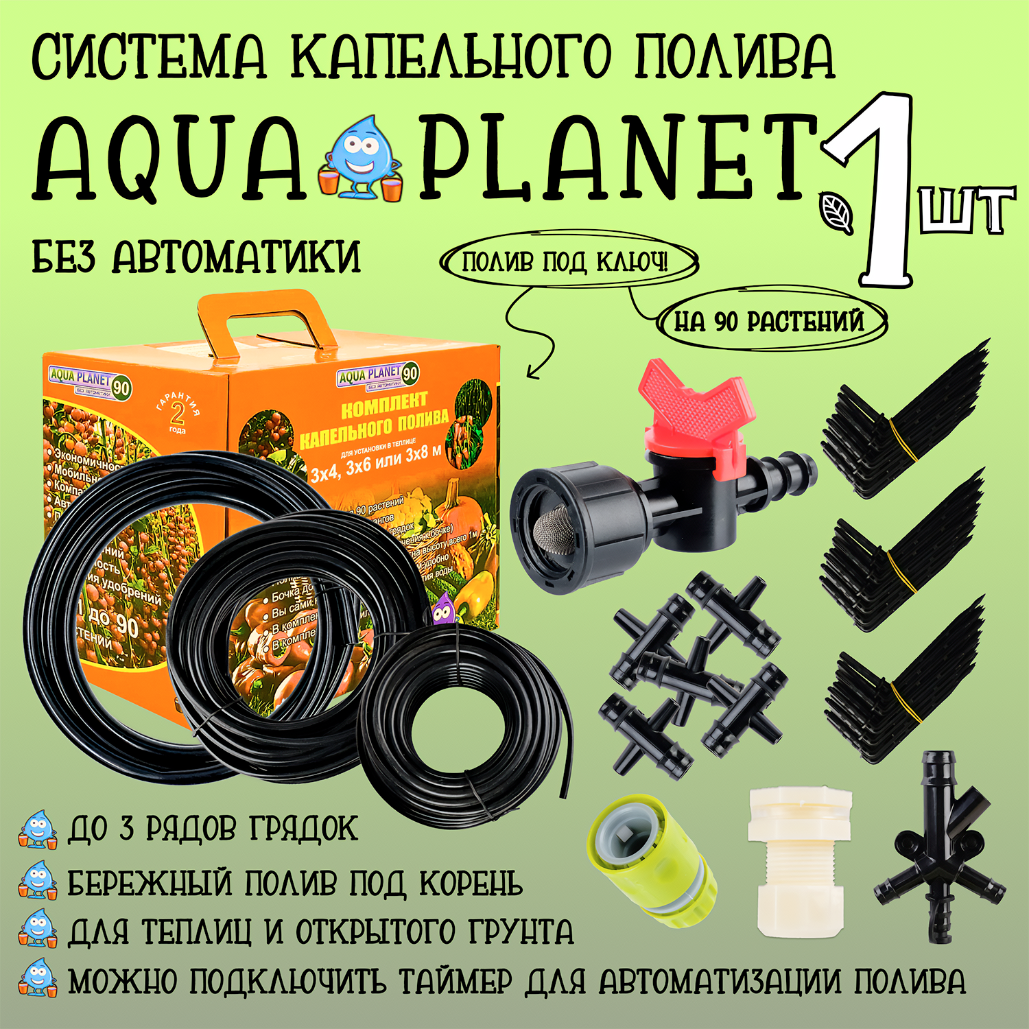 Капельный полив для теплиц, огорода, из бочки, система полива без автоматики на 90 растений, Aqua Planet, 1 штука информация: