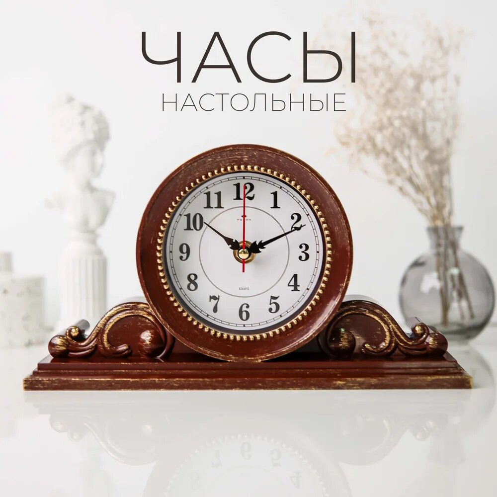 Часы настольные классические Рубин бесшумные, 26 х 14 см часы ретро для интерьера 650 ₽