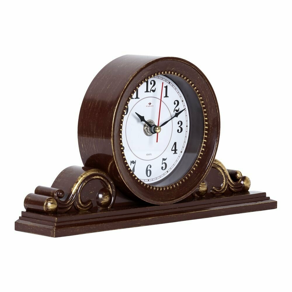 Часы настольные Рубин, кварцевые, бесшумные, коричневые, 26 см x 14 см информация:
