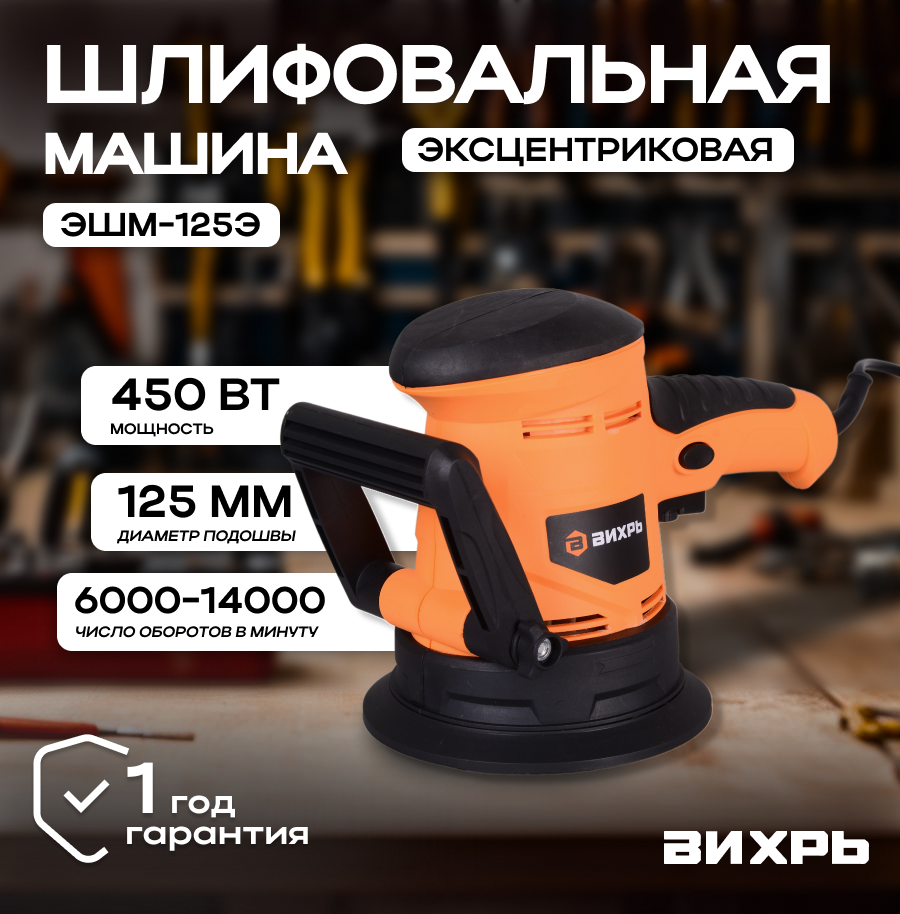 Эксцентриковая шлифовальная машина Вихрь ЭШМ-125Э, 450 Вт, 4 000 - 13 000 об//мин информация: