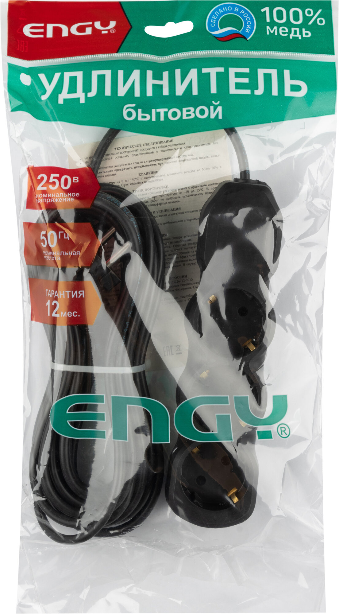 Удлинитель электрический с заземлением Engy "Гранд", 5 метров, 3 розетки, черный 762 ₽