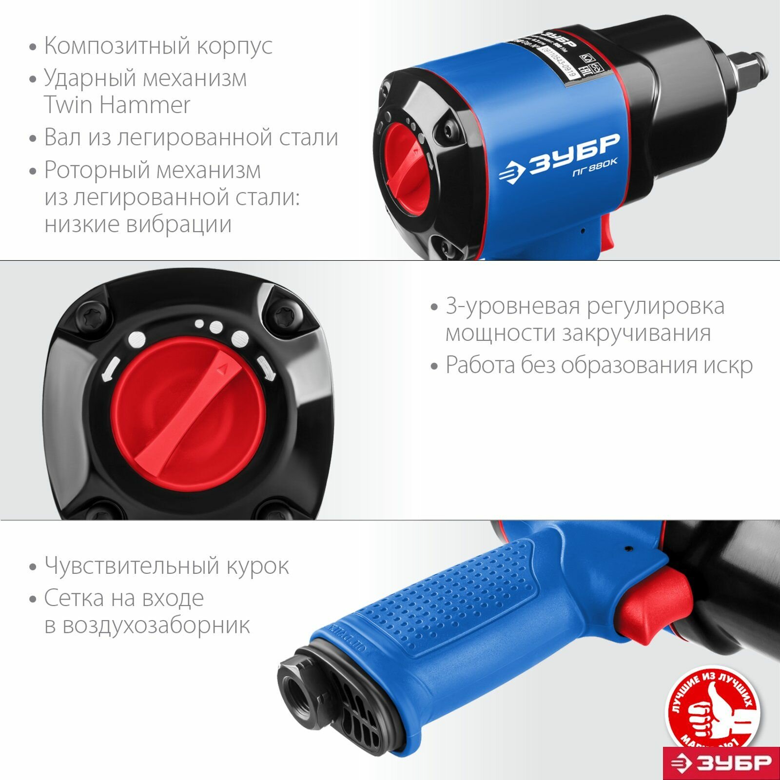 Ударный пневматический гайковерт ЗУБР 1/2", 880 Нм информация: