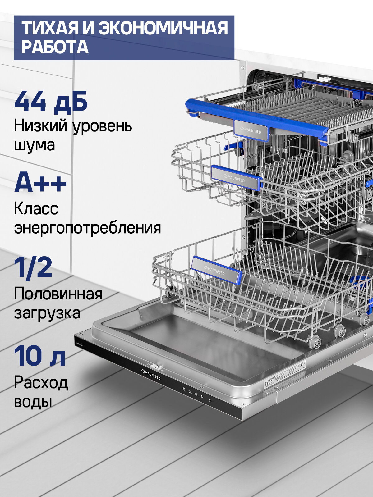10 цен на Посудомоечная машина MAUNFELD MLP-12IM встраиваемая 60 см, 14 комплектов, 8 программы, 3 корзины, автоматическая мойка, сенсорное управление, луч на полу