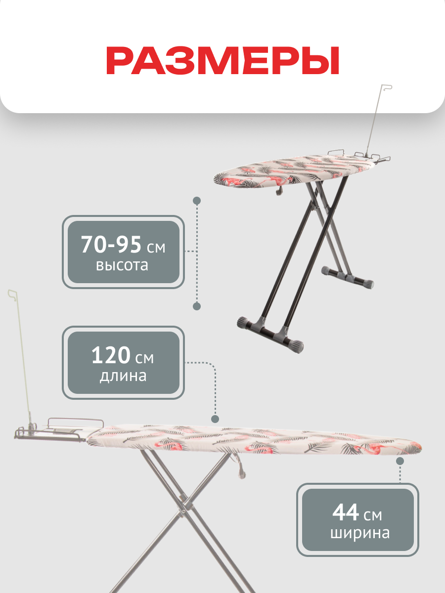 | Размеры гладильной поверхности (ДхШ) | 120 x 44 см |