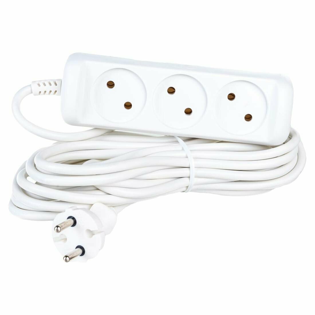 Удлинитель электрический ЭРА без заземления 3 розетки 7м ПВС 2x1 10А, Белый, U-3-7m-2x1