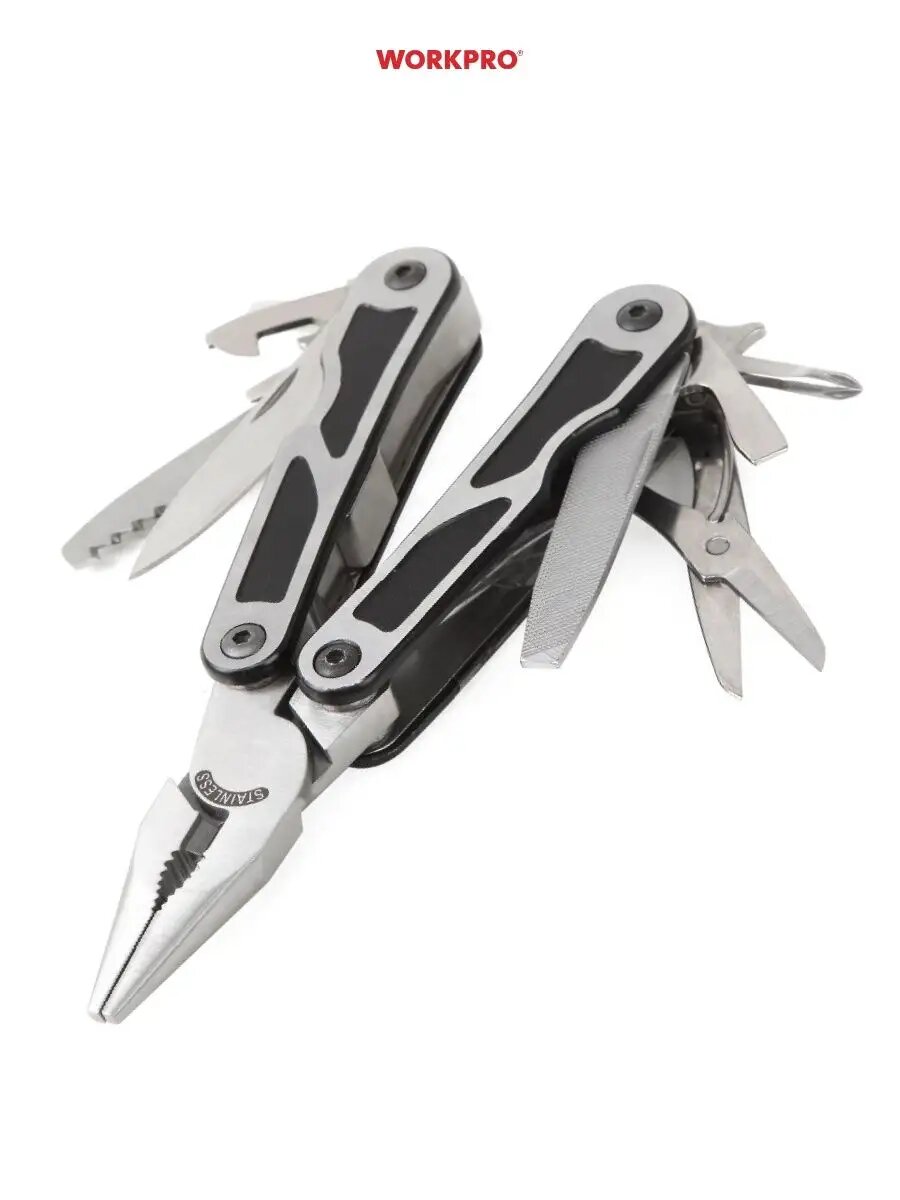 10 цен на Мультитул туристический 15 в 1 в комплекте с чехлом WP382009, WORKPRO #WP382009