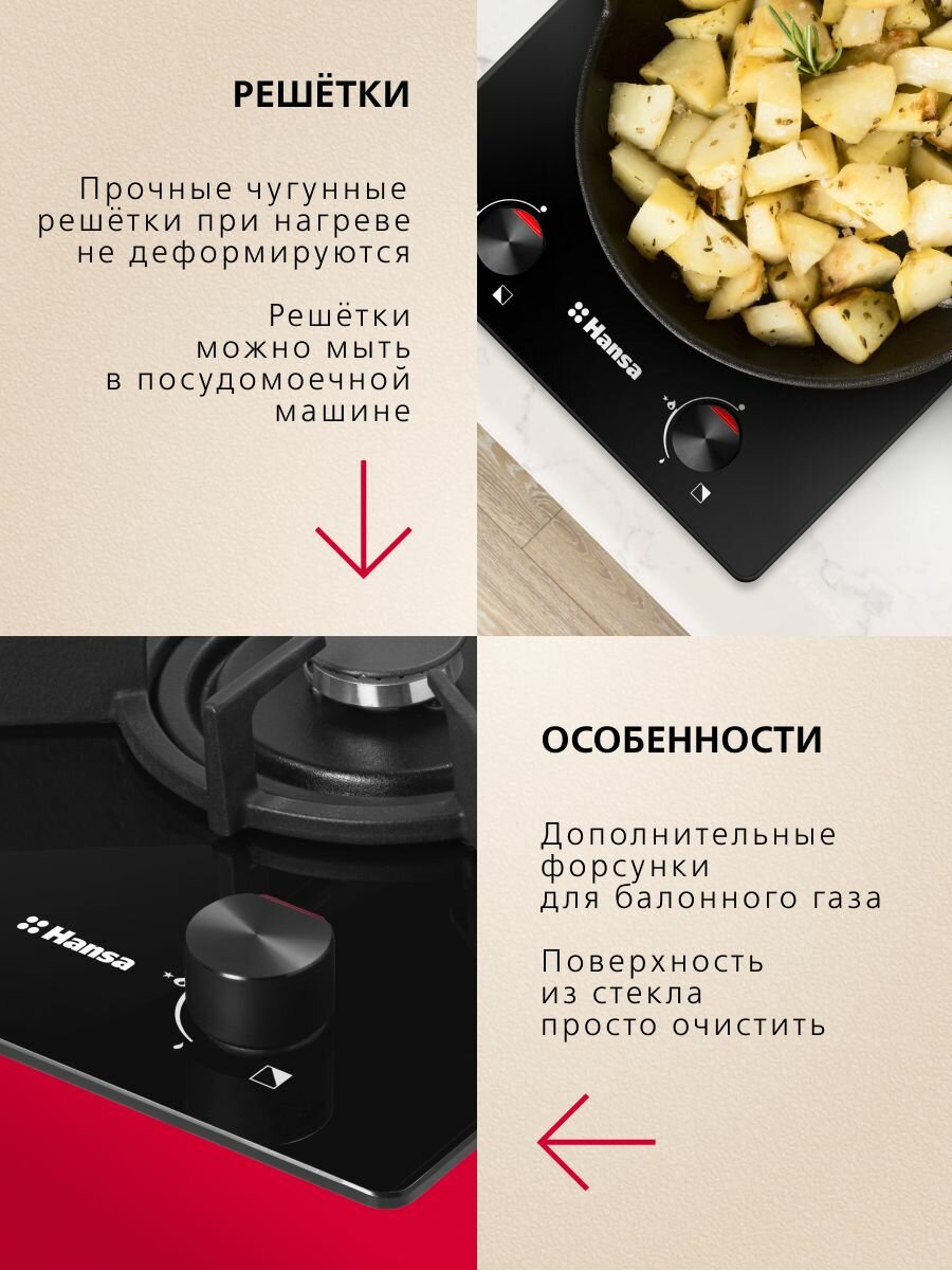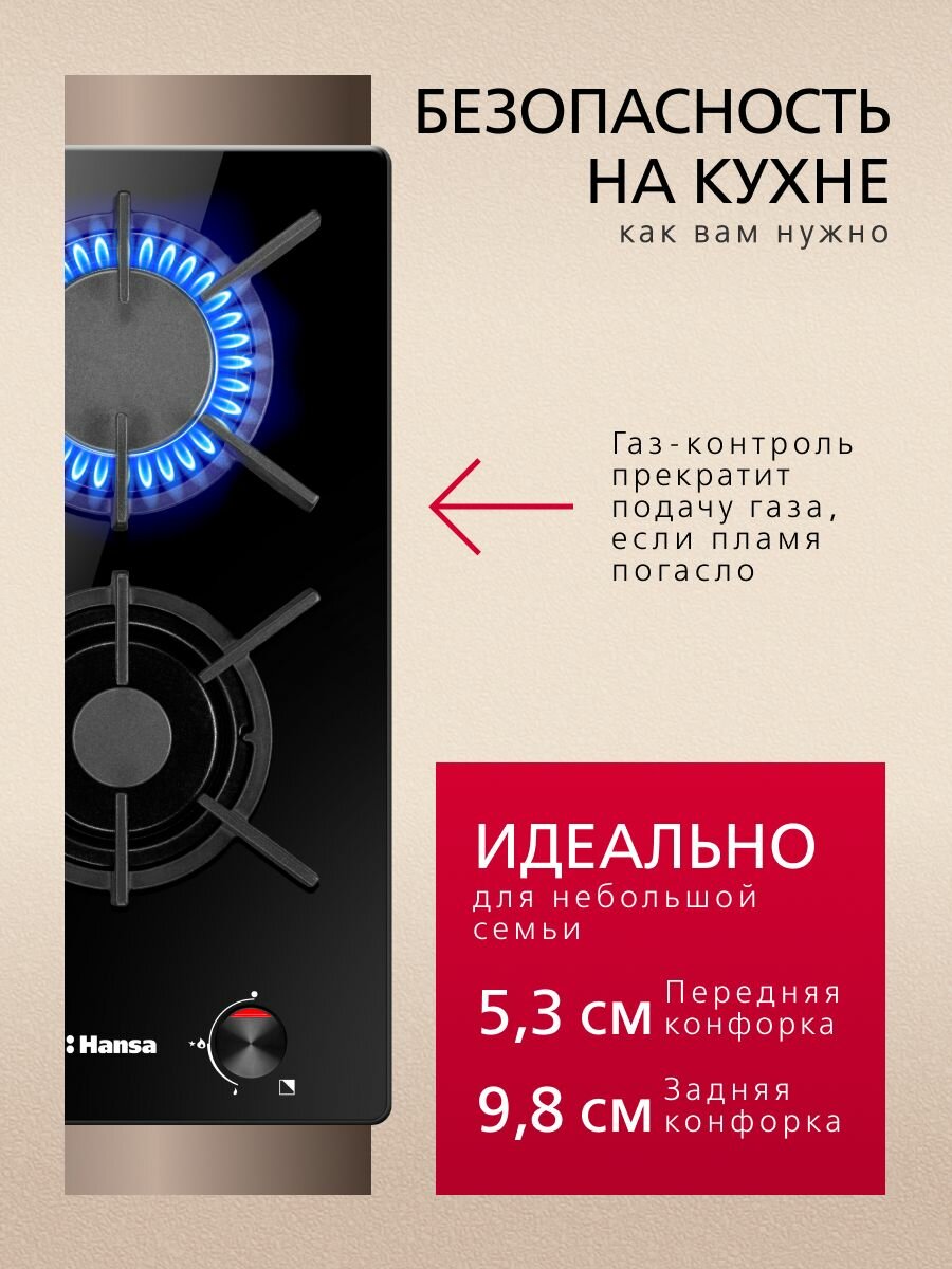 Отзывы на Газовая варочная поверхность Hansa BHKS330300, двухконфорочная, стеклянная поверхность, с газ-контролем и автоподжигом, черная