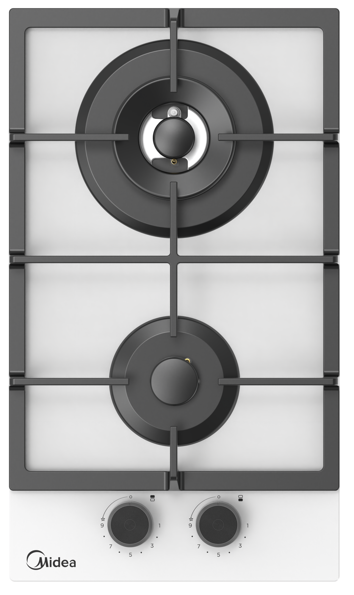 Варочная панель встраиваемя Midea MG3270TGW, газ контроль, 2 конфорки, электроподжиг, белый информация:
