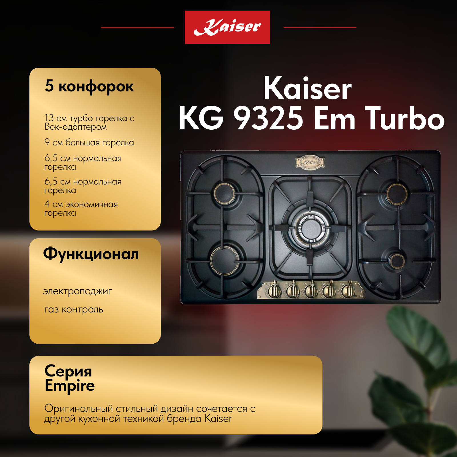 Газовая варочная панель 90 см Kaiser Empire KG 9325 Em Turbo черная информация: