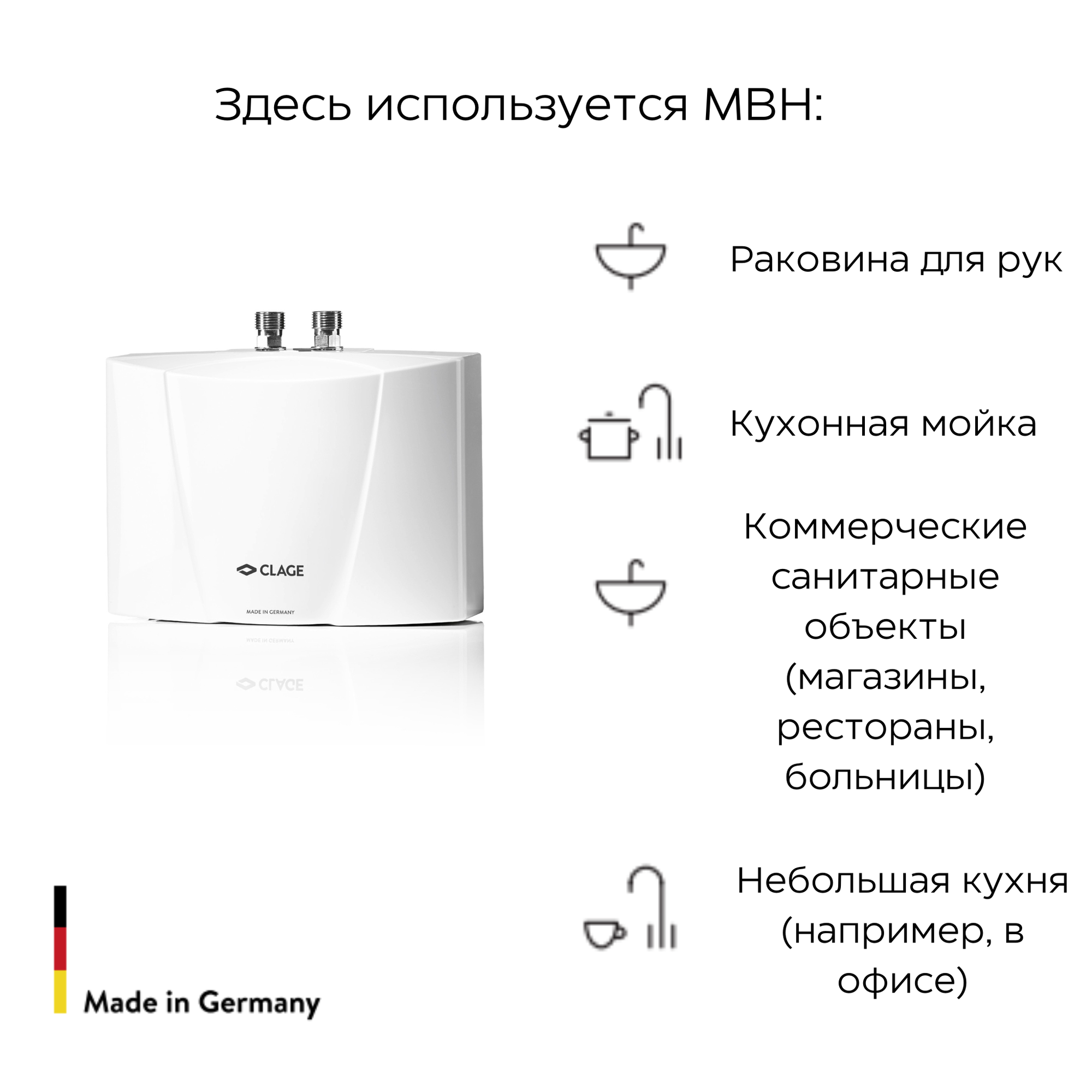 Отзывы на Проточный водонагреватель Clage MBH 4, электрический, 4.4кВт, настенный, белый, универсальный монтаж, 220В