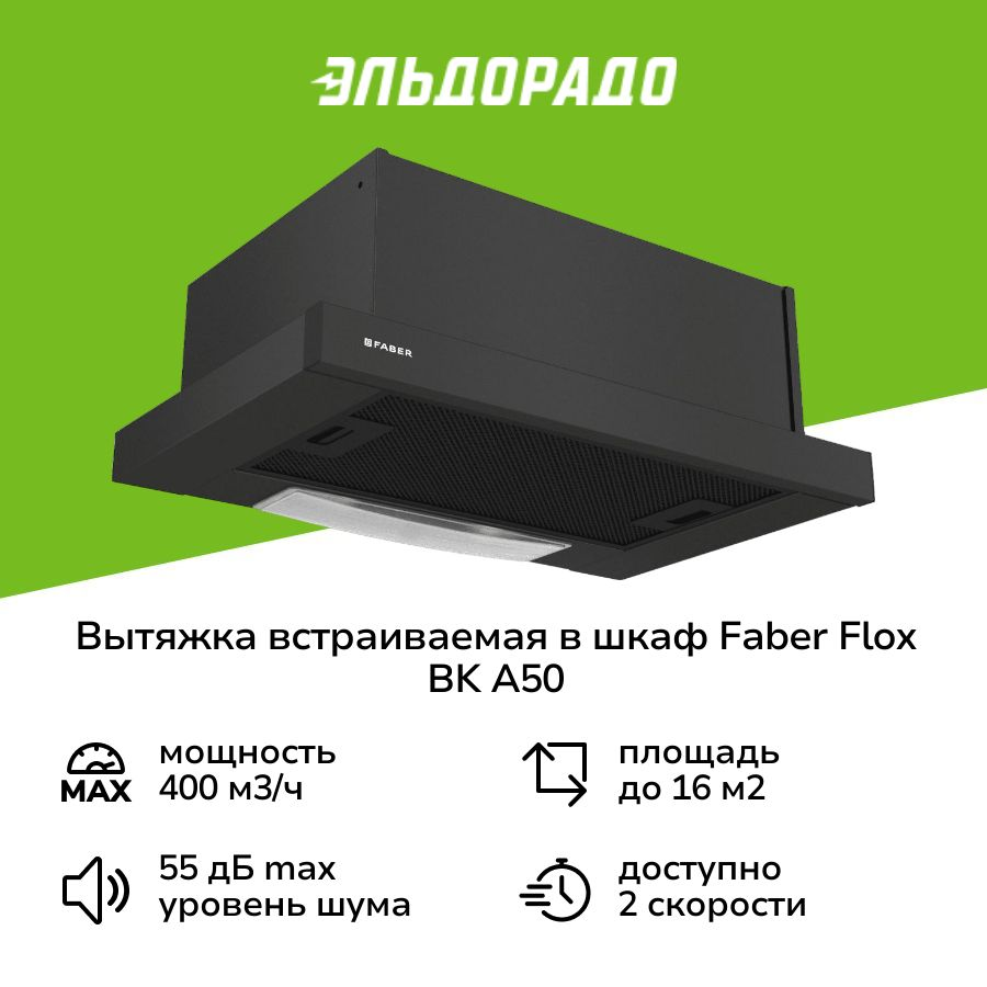 Вытяжка встраиваемая в шкаф 50 см Faber FLOX BK A50 информация: