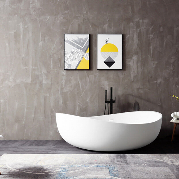 Abber Ванна из искусственного камня Abber Frankfurt 170x75 см, отдельностоящая, овальная, со сливом-переливом, серая, матовая