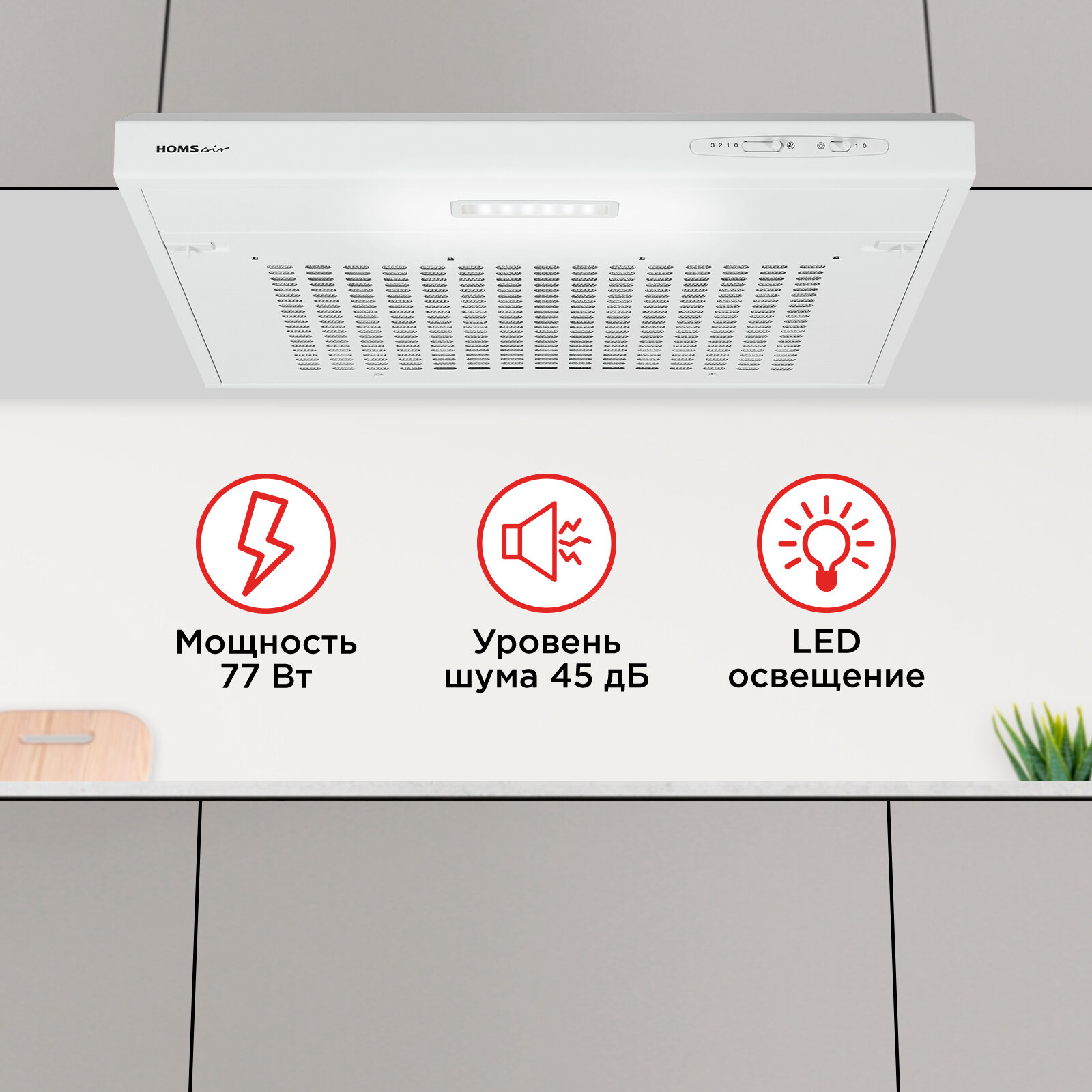 Кухонная вытяжка HOMSair HORIZONTAL 60 белый, 420 Вт, до 12 м2, модерн информация: