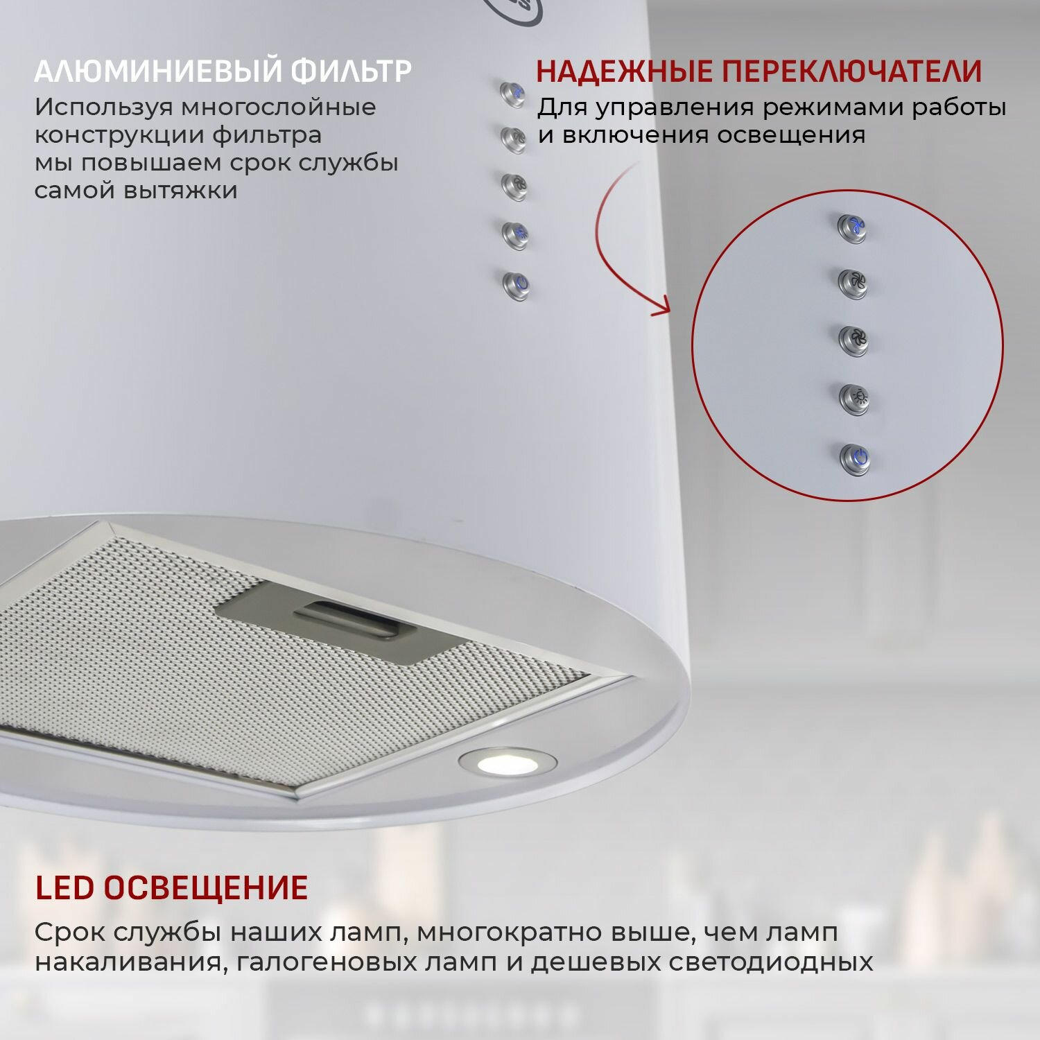 10 цен на Кухонная вытяжка островная MBS AMARANTH 135 ISLAND WHITE/35 см/производительность 1030м3/ч, низкий уровень шума.