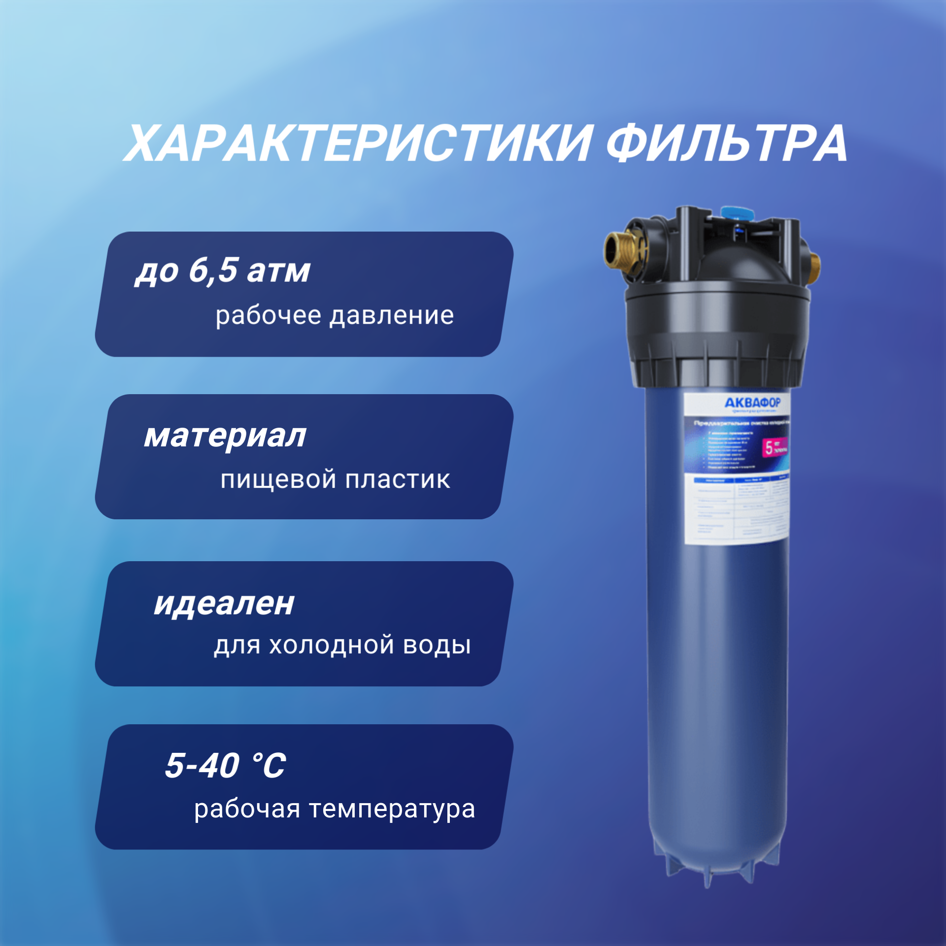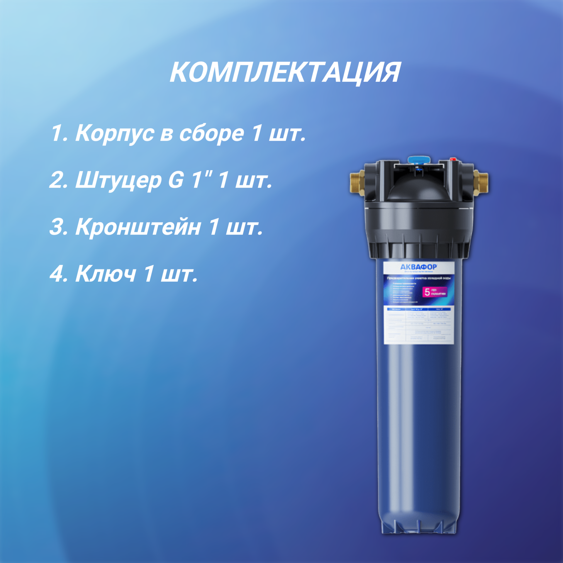 Корпус Аквафор Гросс Миди ВВ 20" для холодной воды соединение 1", синий информация:
