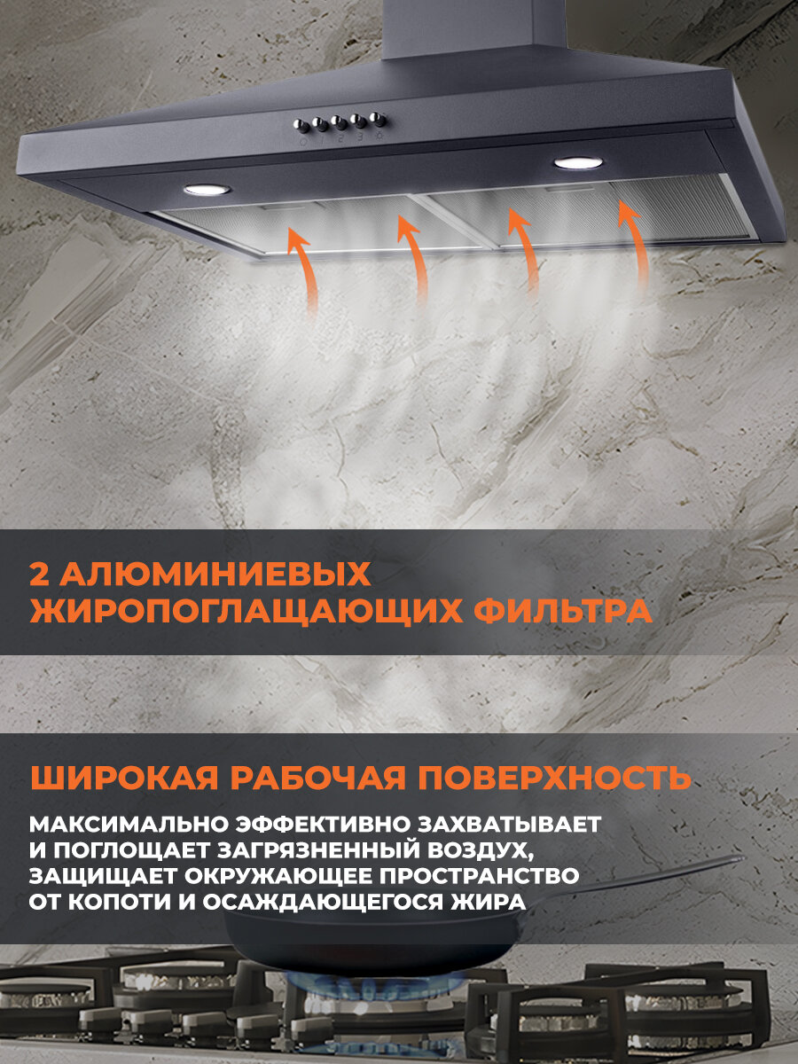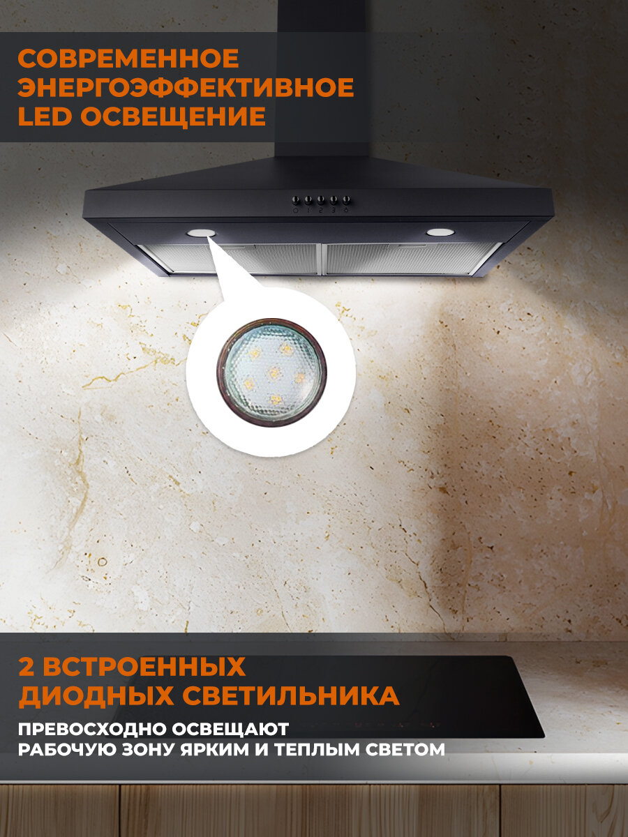 Вытяжка кухонная наклонная Libhof LV-4060 black-silver / тройной алюминиевый жировой фильтр / сенсорное управление