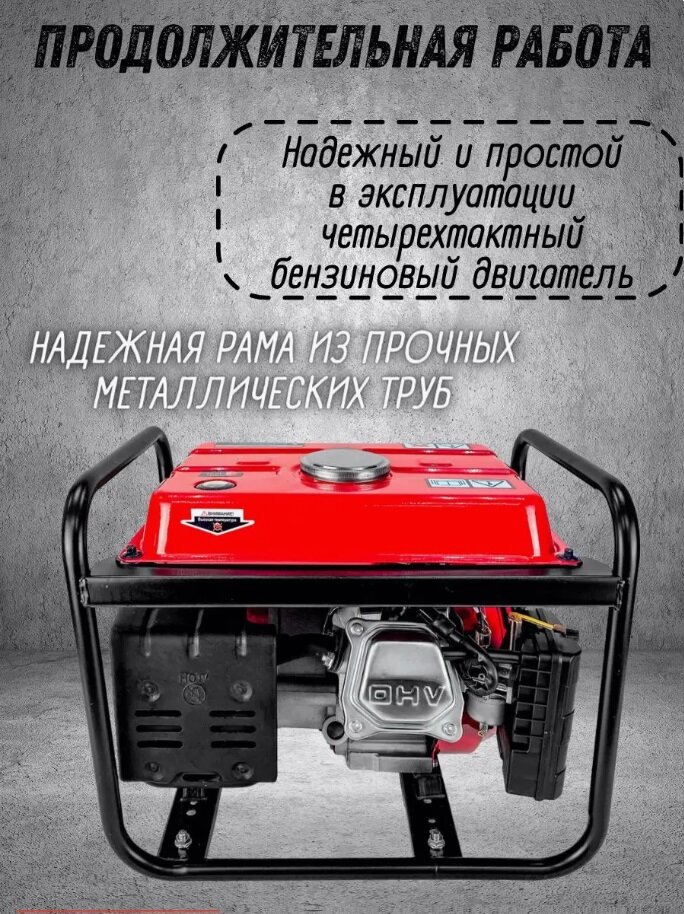| Дополнительная информация | датчик уровня масла, индикатор уровня бензина, автоматическая регулировка напряжения, медная обмотка двигателя |