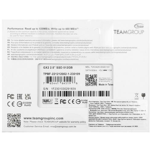 512 ГБ 2.5" SATA накопитель TEAMGROUP GX2 [T253X2512G0C101] информация: