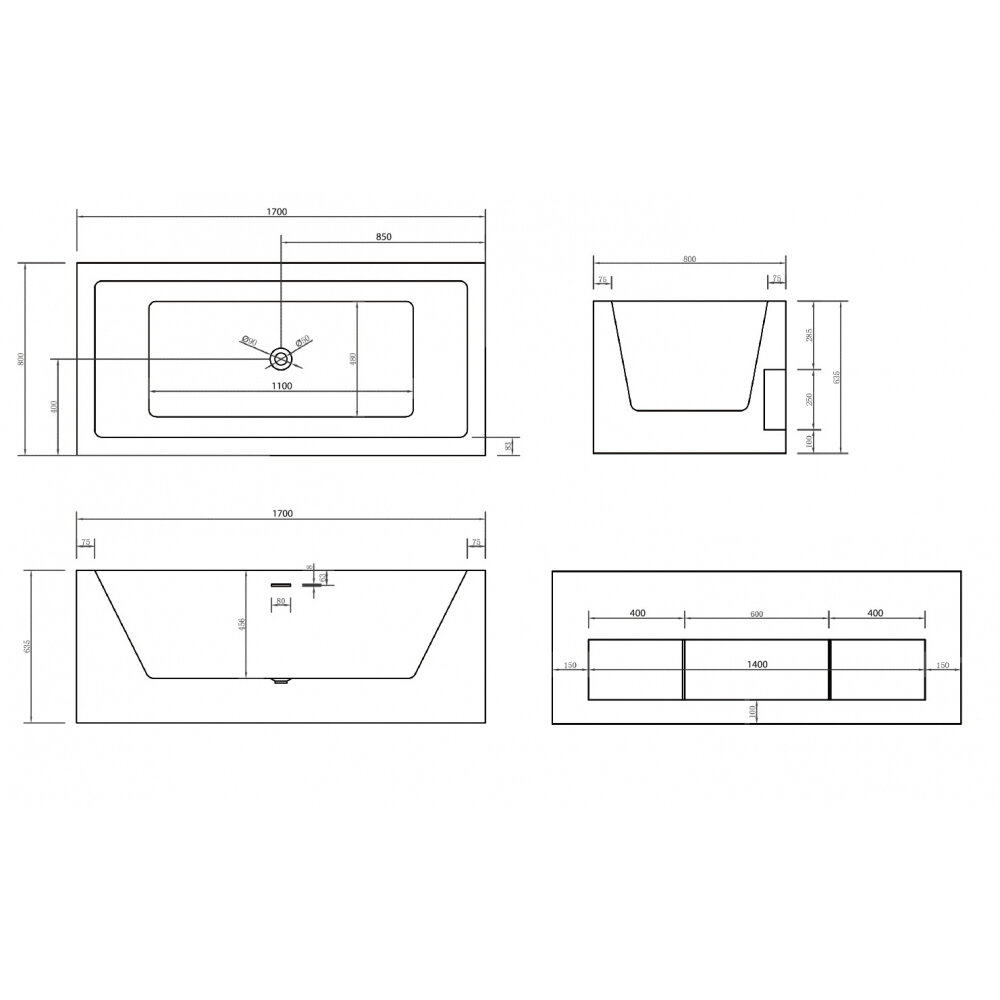 Abber Ванна акриловая 170 х 80 x 63.5 см, отдельностоящая, белая, AB9339-1.7 120 589 ₽