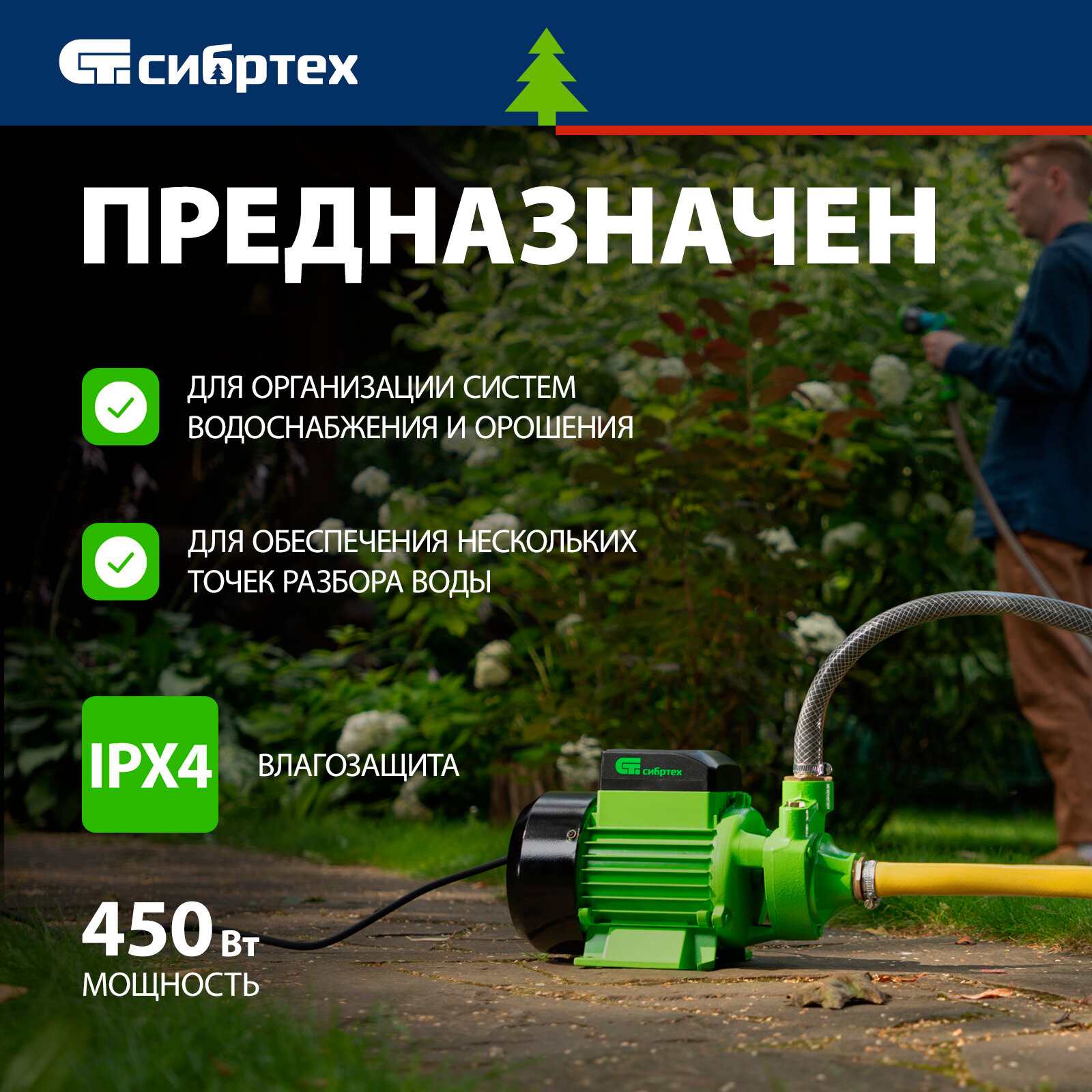 Отзывы на Садовый поверхностный насос Сибртех СПН450-Ч, 450 Вт, напор 40 м, 2100 л/ч, чугун 97242