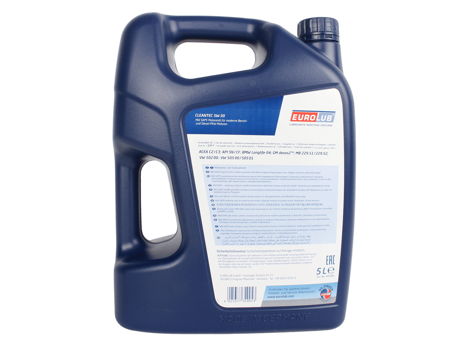 EUROLUB 349005 масо моторное CLEANTEC SAE 5W30 5L EUROLUB 3490