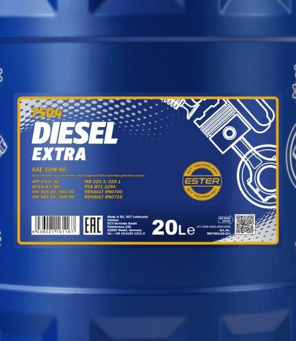 Масло мотор. diesel extra 10w 40 20 л. mannol арт. 1186 информация: