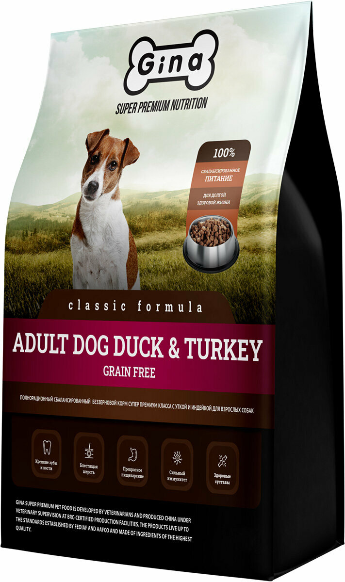 Корм для собак сухой Gina Classic Grain Free Adult Dog Duck&Turkey, беззерновой, утка, индейка 3кг 2 147 ₽