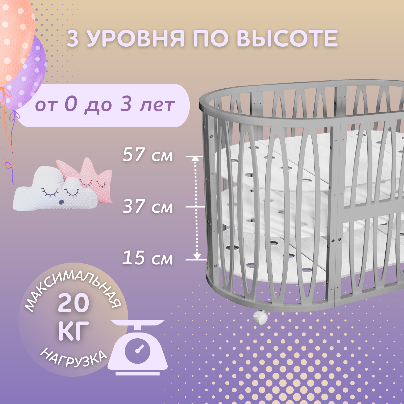 Кроватка для новорожденного трансформер 9 в1 с резным узором Мелони, овальная 125*75, Азбука Кроваток, серый информация: