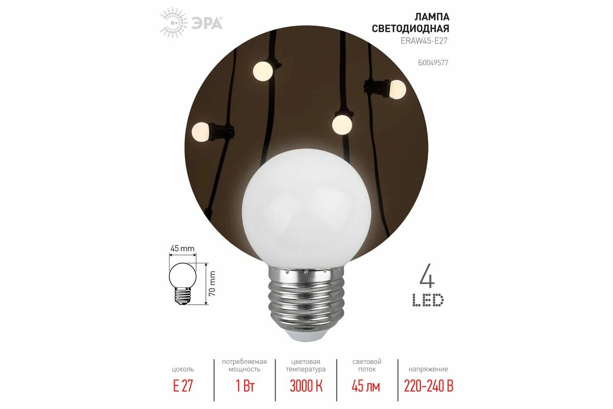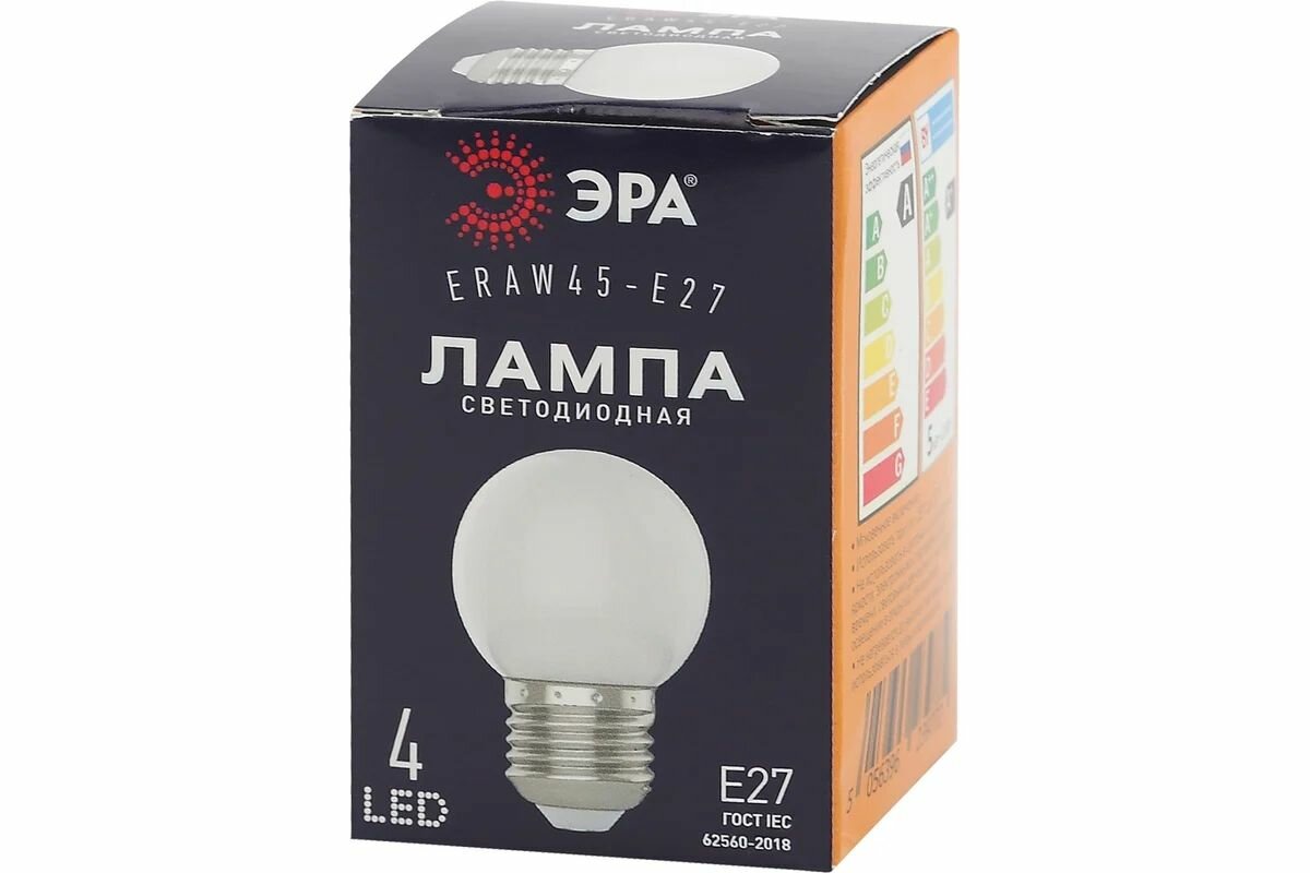 Светодиодная лампочка ЭРА, форма шар, 1W, цоколь E27, 3000 К информация: