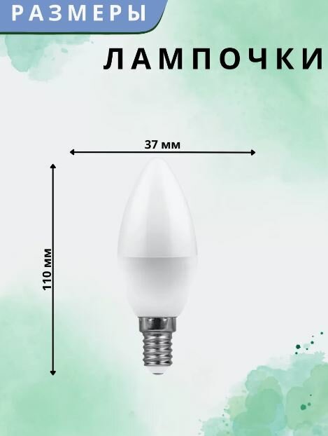 (20 шт.) Светодиодная лампочка Feron свеча C37 E14 9W(800lm) 2700K 2K матовая 100x37, LB-570 25798 Теплый белый. Цоколь E14 3 381 ₽