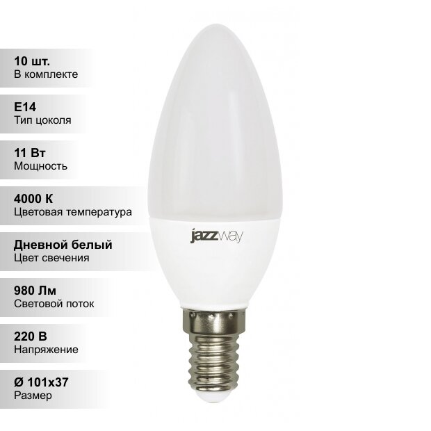 (10 шт.) Светодиодная лампочка Jazzway С37 11Вт 230В 4000K E14 информация: