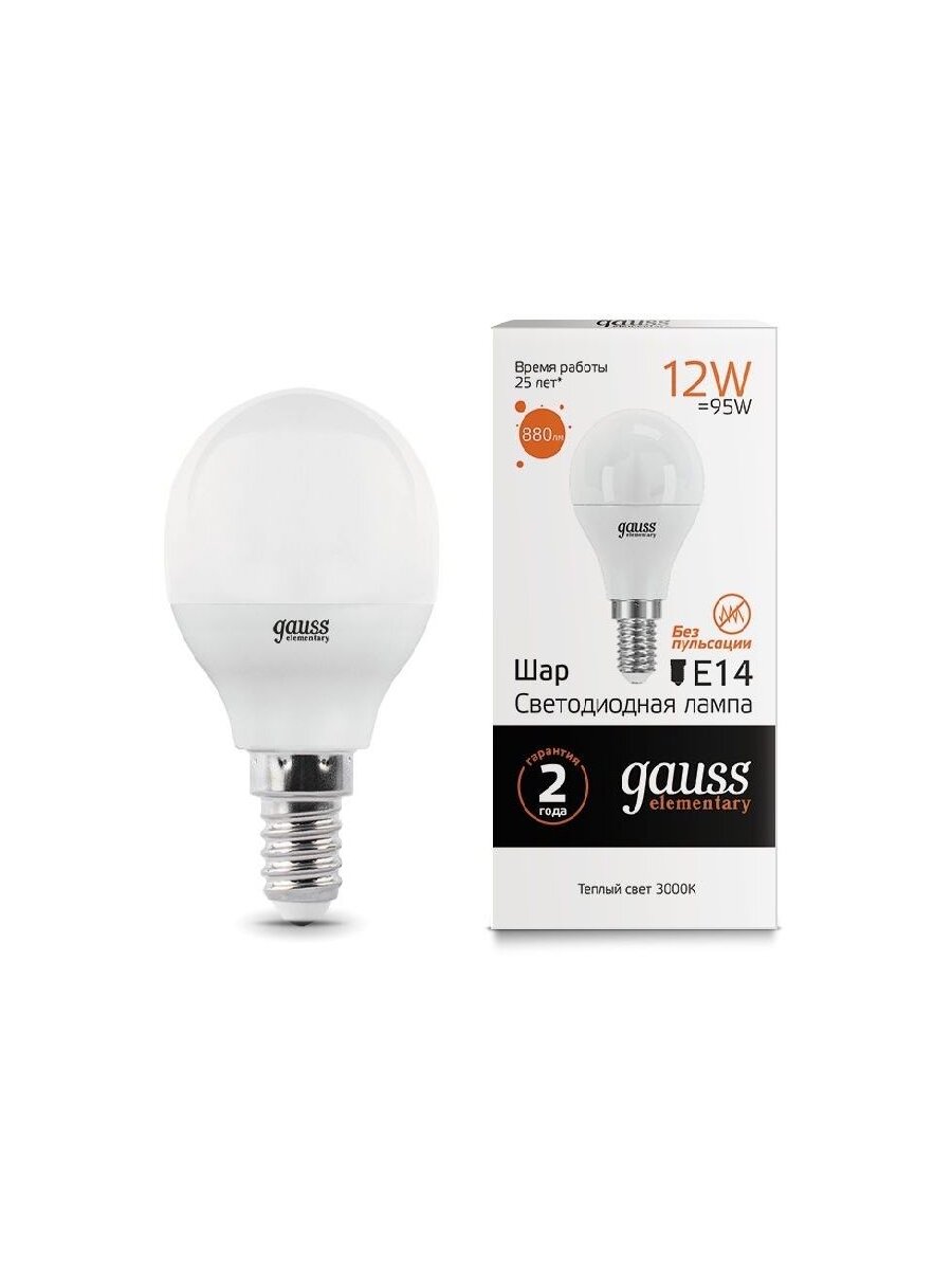 10 цен на (2 шт.) Светодиодная лампочка Gauss Elementary Шар G45 E14 12W 880lm 3000K 2K 82х45 матовая, пластик/алюм. 53112 Нейтральный белый. Цоколь E14