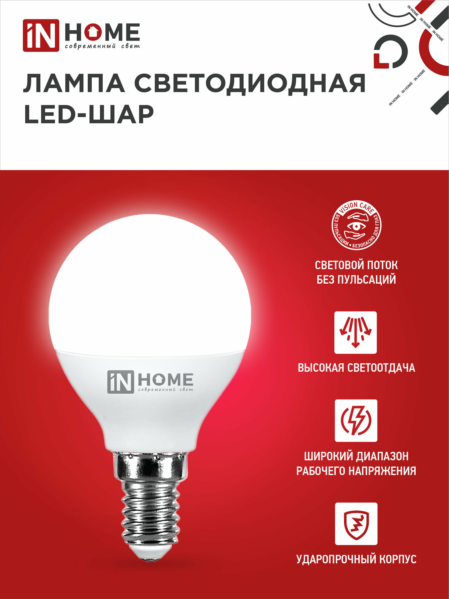 Светодиодная LED лампа IN HOME LED-ШАР-VC 6Вт 230В Е14 4000К 480Лм 4690612020518