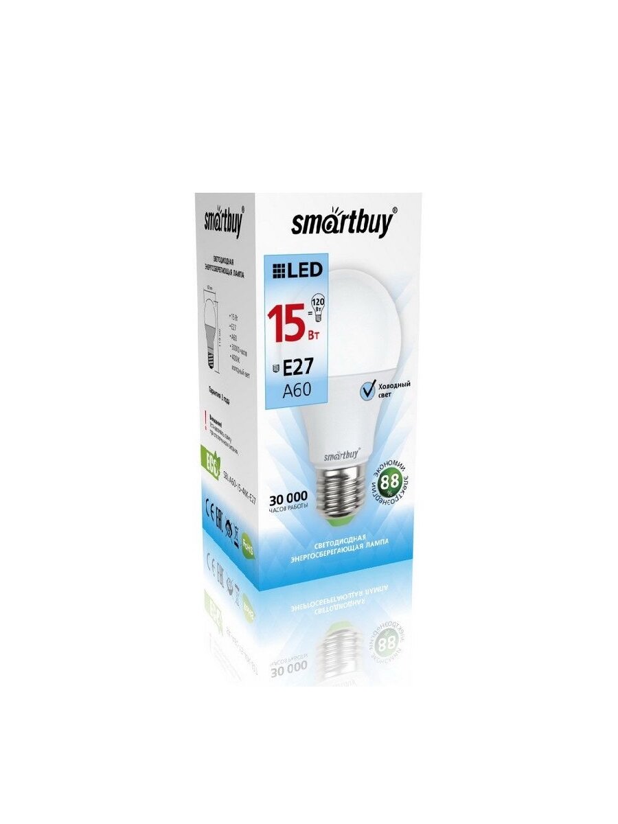 Отзывы на (10 шт.) Светодиодная лампочка Smartbuy ЛОН A60 E27 15W(1200lm) 4000K 4K 119x60 SBL-A60-15-40K-E27 Нейтральный белый. Цоколь E27
