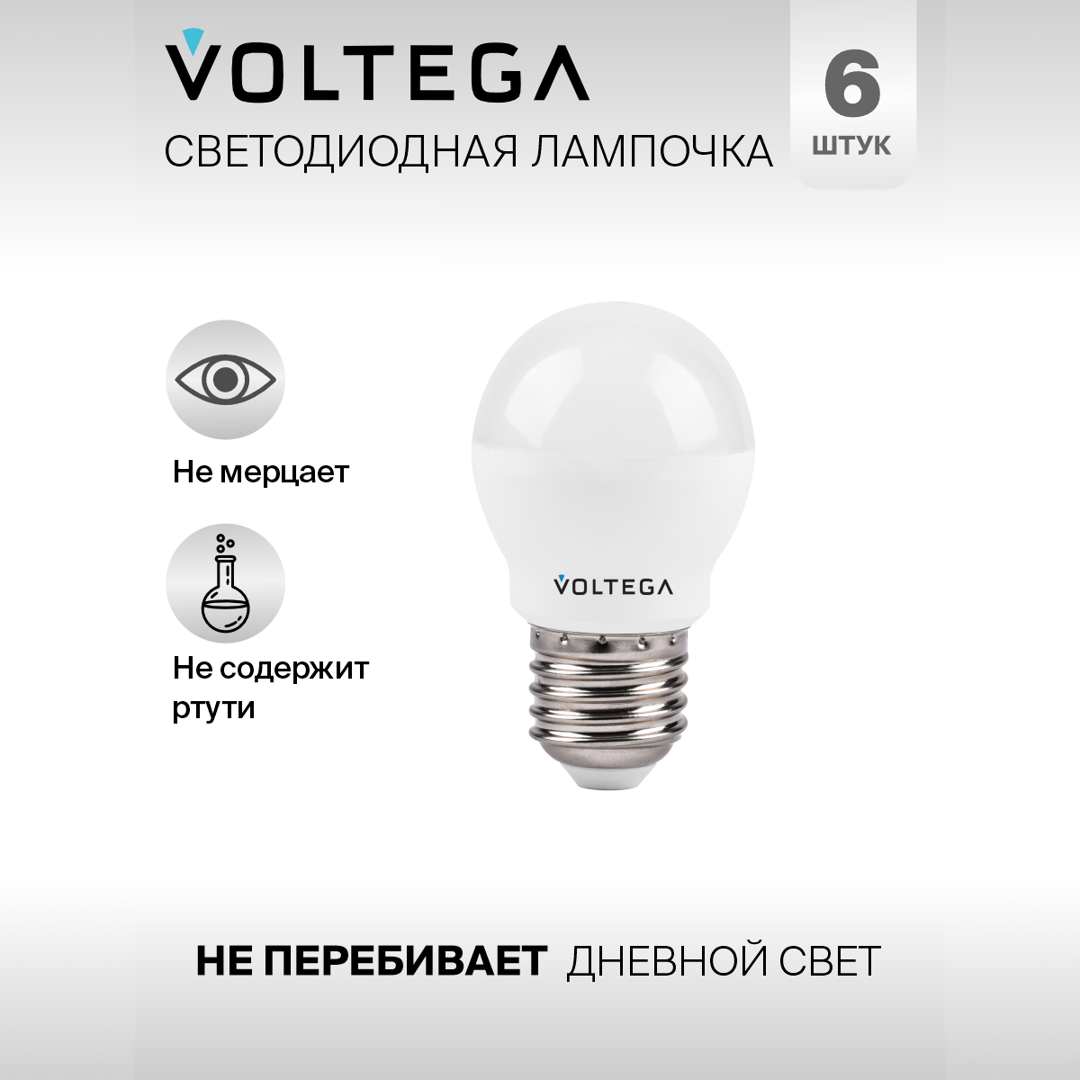 Отзывы на Лампочка светодиодная E27 форма шар матовый 10W теплый свет Voltega Simple Globe 2800K упаковка 6 шт.