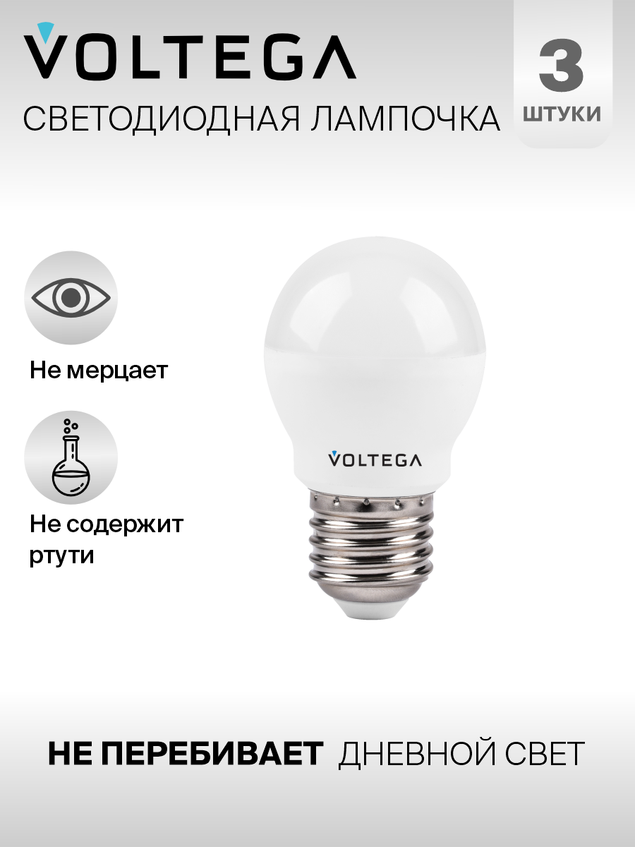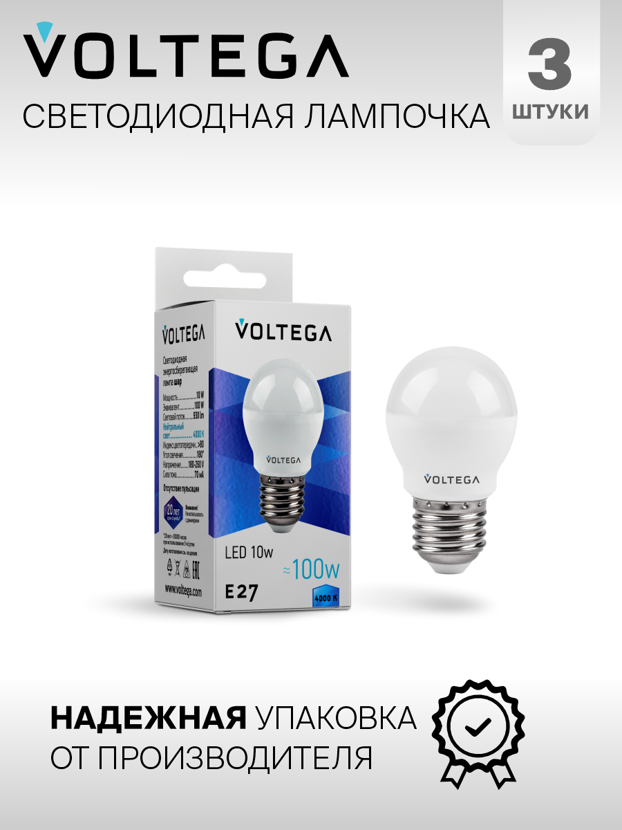 Отзывы на Лампочка светодиодная E27 форма шар 10W нейтральный белый Voltega Simple Globe 4000K упаковка 3 штуки